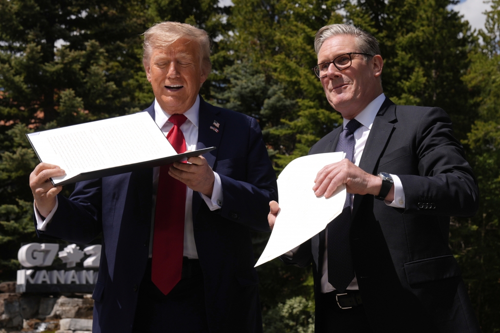 Die USA und Großbritannien haben am Rande des G7-Gipfels in Kanada ihren Anfang Mai verkündeten Handelspakt vorangebracht. US-Präsident Donald Trump unterzeichnete im Beisein des britischen Premierministers Keir Starmer eine Verordnung zur Umsetzung von Zollerleichterungen, unter anderem für bis zu 100.000 britische Autos pro Jahr.
