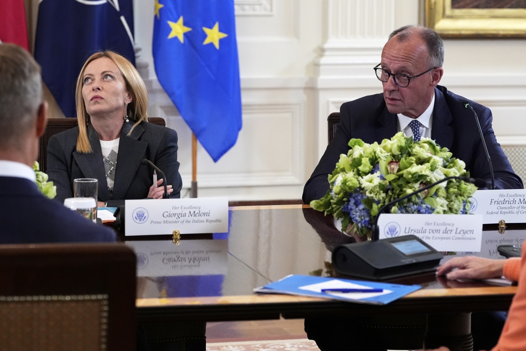 Giorgia Meloni verdreht die Augen, als Friedrich Merz Waffenruhe in der Ukraine fordert