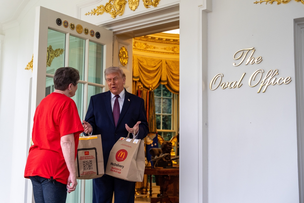President Trump just received a McDonald’s delivery order from a DoorDash driver outside the Oval Office!