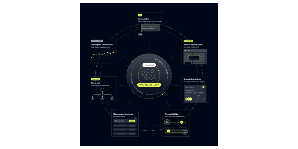- Campaigns-KI-Agent (Neu) : Automatisiert und beschleunigt den Übergang vom Kampagnenauftrag zur Ausführung über eine optimierte Gesprächsschnittstelle, die es den Benutzern ermöglicht, schnell und präzise ausgereifte, markenkonforme, kanalübergreifende Erfahrungen per App, SMS, Push-Nachricht, E-Mail und App-Weberlebnisse zu lancieren und zu skalieren.