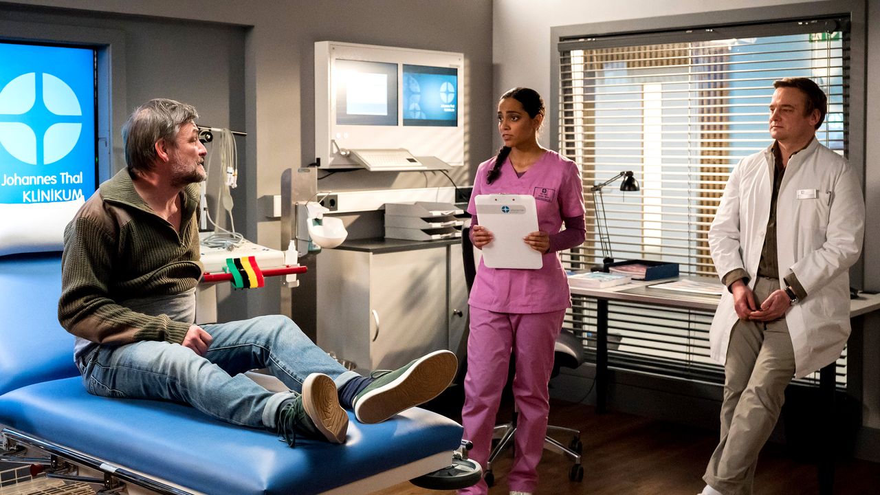 📺 Vorschau: Dr. Leyla Sherbaz und Assistenzarzt Florian Osterwald kümmern sich nach einem Autounfall um den schwerverletzten Max Krohn und seinen Partner Thomas Sommer. Dr. Emma Jahn und Dr. Marc Lindner kümmern sich indes um Joachim Gerbert, der unter diffusen Bauchschmerzen leidet. Leyla Sherbaz und Assistenzarzt Florian Osterwald kümmern sich nach einem Autounfall um den schwerverletzten Max Krohn und seinen Partner Thomas Sommer. Thomas musste miterleben, wie Max fast gestorben wäre. Dieser Schock prägt ihn nachhaltig und er beginnt, übereilte Lebenspläne mit Max zu schmieden. Dieser ist sehr erfreut über den plötzlichen Sinneswandel seines Partners und nimmt Thomas' Pläne wohlwollend auf. Florian Osterwald mahnt, diese Euphorie mit Vorsicht zu genießen, denn offensichtlich ist sie nach wie vor dem Schockzustand von Thomas Sommer zuzuschreiben. Emma Jahn und Marc Lindner kümmern sich indes um Joachim Gerbert, der unter diffusen Bauchschmerzen leidet. Doch die Behandlung gestaltet sich schwierig, denn Joachim hat scheinbar noch ein ganz anderes Problem. Rasch stellt sich heraus, dass er von Ängsten geplagt ist. Sind die Bauchschmerzen vielleicht gar nicht das eigentliche Problem? Julia hat die Vermutung, dass sich unbeobachtet jemand an ihrem Experiment zu schaffen macht. Sie begibt sich mit detektivischen Mitteln auf die Suche nach dem Übeltäter. (Quelle: MDR, übermittelt durch FUNKE Programmzeitschriften)
