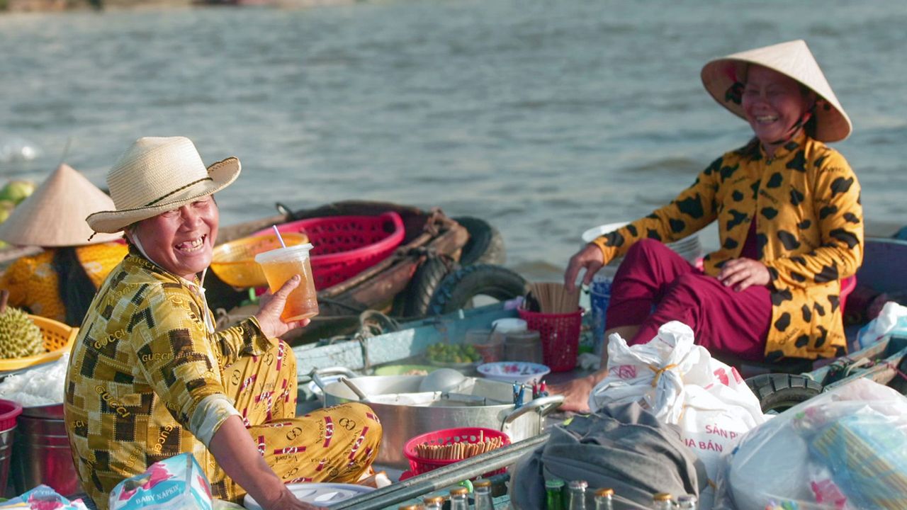 📺 Die Familie von Tran Van Thai lebt seit drei Generationen am Fluss Mekong. Tran führt die Familientradition fort und verkauft Süßkartoffeln. Zusammen mit seiner Frau Nga zieht er seine Töchter auf zwei Booten groß, die am Flussufer vertäut sind. Sein Alltag wechselt zwischen Vertrieb und Einkauf bei den Erzeugern. Einmal pro Woche fährt er durch die kleinen Kanäle zu den Süßkartoffelbauern im Delta, um seine Laderäume aufzufüllen. Dann verkauft er seine Ware an die Einzelhändler auf den Märkten in der Stadt. Über Hunderte von Kilometern hinweg ist der Fluss für die Bewohner des Deltas eine wichtige Transport- und Handelsader. Doch seit einigen Jahren konkurriert der Straßentransport mit dem Wasserweg. Der Absatz geht zurück und Tran fragt sich, ob sein Geschäft und seine Lebensweise Bestand haben werden. Auch der Schriftsteller Nham Van Hung wurde am Mekong geboren und ist mit der Lebensweise vor Ort vertraut. Er gibt Einblicke in die menschliche Gemeinschaft rund um den schwimmenden Markt. May Thao hat nach dem Tod ihres Mannes beschlossen, Kaffee auf dem Fluss zu verkaufen, um ihre Familie zu ernähren. Jeden Tag ab fünf Uhr morgens dreht sie mit ihrem kleinen Boot ihre Runden und verkauft Kaffee und andere Getränke. Jeder hier kennt May, und zu jedem Ort weiß sie eine Geschichte zu erzählen. Mit über 65 Jahren ist Bay Toi eine der ältesten Händlerinnen auf dem schwimmenden Markt. Weil sie zu alt ist, um ihr Boot durch das Gedränge zu steuern, hat sie ihren Anker in der Mitte geworfen. An Bord kocht sie lokale Gerichte mit jenen Aromen und Düften, für die die südvietnamesische Küche berühmt ist. (Quelle: Arte, übermittelt durch FUNKE Programmzeitschriften)